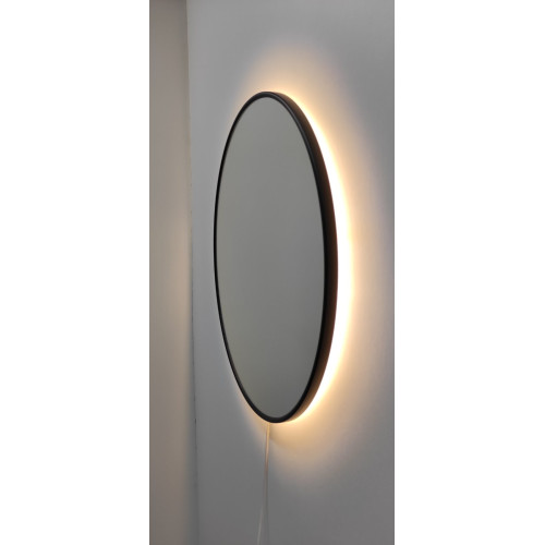 Зеркало круглое в раме с подсветкой Р2021. цвет рамы черный матовый, рама металлическая, влагостойкая, зеркало влагостойкое.
