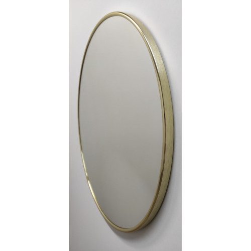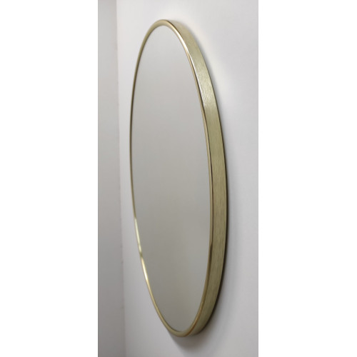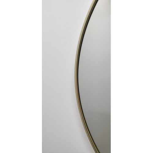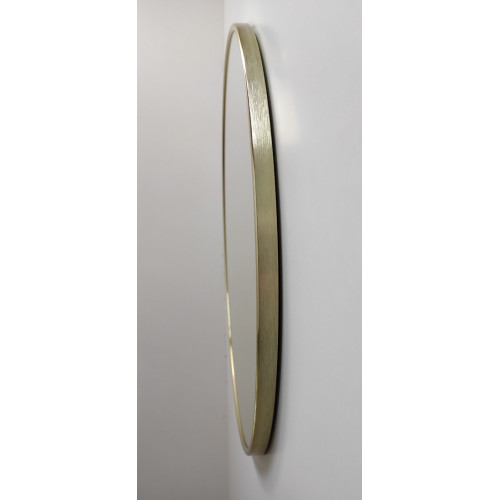 Зеркало круглой формы в металлической раме разных диаметров, Р2001, рама цвета золото глянец, настенное, влагостойкое. Ширина профиля рамы на зрителе-9 мм. Толщина от стены профиля рамы 19 мм. Зеркало имеет ушки для подвески на стену. Зеркало укреплено пленкой. Профиль рамы анодированный влагостойкий, Цвет золото глянец. Боковая поверхность профиля с текстурой.