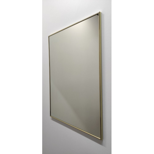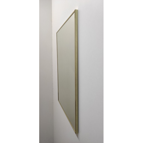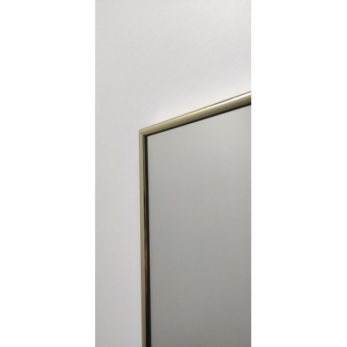Зеркало прямоугольной формы в металлической раме под золото глянцевое, Р2001.Ширина профиля рамы 9 мм. Толщина от стены профиля рамы 19 мм. Профиль и зеркало влагостойкие. Профиль рами алюминий анодированный , по боковой стороне профиль с фактурой. На зеркале есть крепление с ушками для подвески на стену. Зеркало укреплено пленкой. Профиль рамки округлой формы.